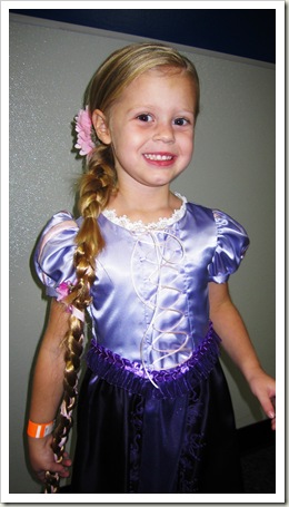 This year, we started planning a little earlier. On Rya’s request, she went as Rapunzel (or the more modern “Tangled”). So that narrowed our options for Tieg’s outfit down to Pascal, a chameleon; Max, a horse; or Flynn Ryder, the handsome thief. We finally decided on Flynn Ryder. There was some debate on whether it was weird for Rya’s little brother to don the costume of the character who eventually became her love interest in that movie. Our rationalization was that Flynn Ryder was actually a fictional character from a book, whereas Eugene was the actual love interest. So for any of you that had the same concerns, be appeased.